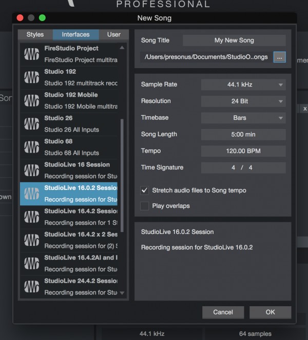 In Studio One, make sure when you setup a new song to select the Interfaces Tab and select StudioLive 1602 so all the I/O is setup for you. This is the quickest path to success without having to do it all manually through Song Setup.