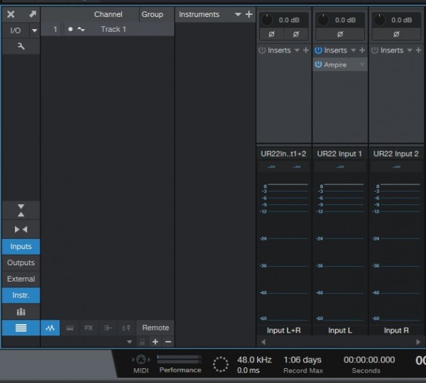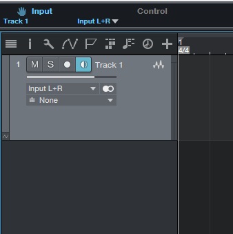 So basically, you open a bus channel with the input coming from you mic line, and you route the output of that bus to the input of an empty Audio Track, which is the track you’ll be using to capture the recording.