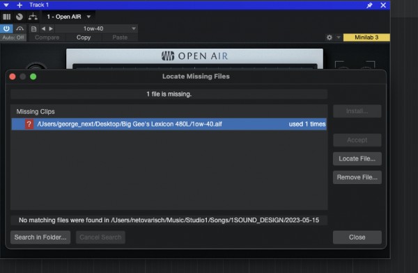 Hello, I recently installed a soundset and any preset of this soundset that I open gives a missing files error. Moreover, pay attention to the initial path of the file is the computer "george_next" (I don't know who this guy is). I wanted to try to remove this soundset, but when I remove it in the section studio one installation, it disappears and is not available for installation.