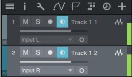 To monitor (listen to) live audio input on an Audio Track, click on the Monitor enable button once. This button should turn blue, and you should begin to hear your live audio input and see its input level on the Track meter.